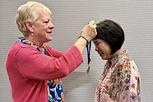 護理學院院長蔡秀敏表示,AANP成立於1985年,會員人數超過12萬人,為全球最具影響力的專科護理師專業組織之一,「國際進階護理師大使獎學金計畫」是協助各國推動進階護理角色發展的重要機制,計畫推動以來全球累積僅約20位大使。校友陳秋慧2024年獲選大使,是國際對其專業實力的高度肯定,除完整參與年度研習會課程外,亦可進入學會核心活動,榮譽性與代表性極高。