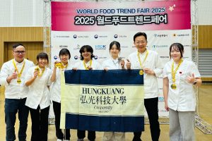 弘光科技大學國際餐旅學院師生在「2025韓國AFA世界廚藝大賽」中勇奪6面金牌2面銀牌,展現亮眼實力!本次賽事共有11國選手同場競技,5名學生以麵包、馬卡龍、卡通餅乾等「卡哇伊」作品獲佳績,其中李子寧、黃芝瑄這兩名學生更一口氣挑戰兩種項目比賽,展現豐沛創作能量及國際競爭力。
