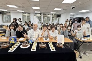 學生們近距離觀摩,體驗頂級烘焙技術,學習如何將傳統經典與創新概念結合,提升甜點的外觀美感與口味層次。大二張同學說,看到大師運用創新技法,將日常零嘴爆米花升級為高級甜點的整個過程,感到非常驚艷;另一名林同學說,之前看過很多法式甜點網路教學影片,這次Roullard老師的示範各種不同新穎技法,啟發她思考各種創新改造經典甜點製作方法的可行性。